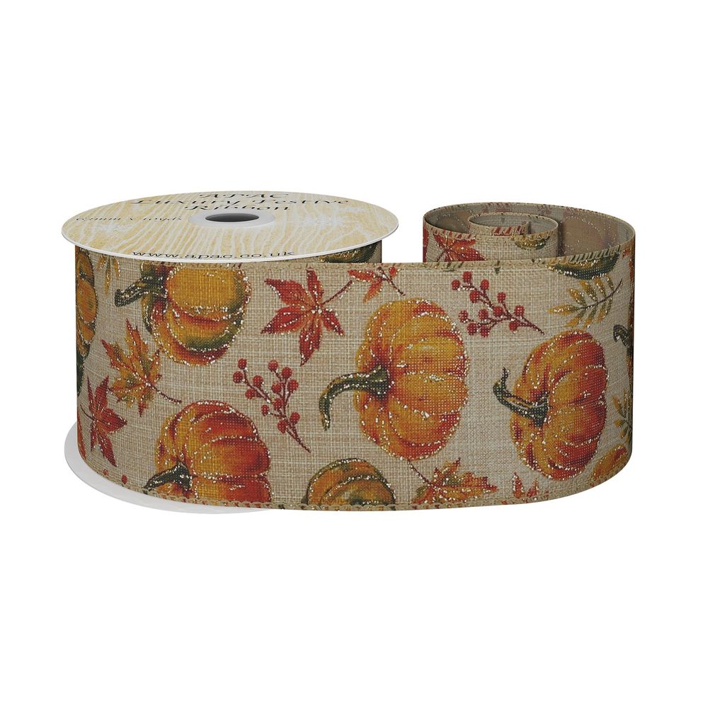 Add a touch of autumnal vibrancy to your craft and floristry displays with this beautiful Autumn Ribbon with Pumpkins! This special ribbon is perfect for adding an extra level of enchantment to wreaths, table arrangements, and window trimmings. Measuring 63mm x 10 yards, this metallic ribbon features gorgeous pumpkins along its length and imparts a feeling of warmth even in the colder months.