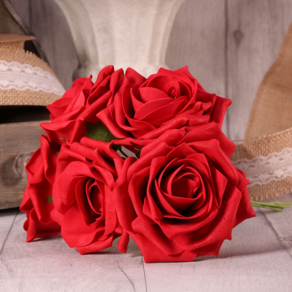 Elevate your event decor with this elegant bundle of red 5 foam tea roses. Each rose can be used separately or kept together for a stunning floral arrangement. Bring a realistic touch to weddings, centrepieces, or any project with these versatile flowers.