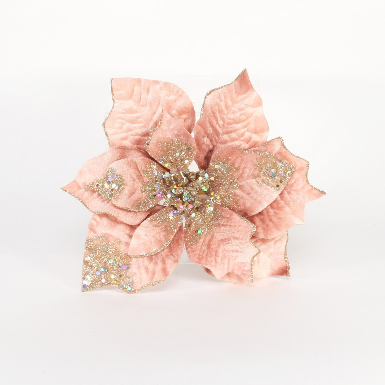 Rose Gold Velvet Poinsettia Flower with Clip