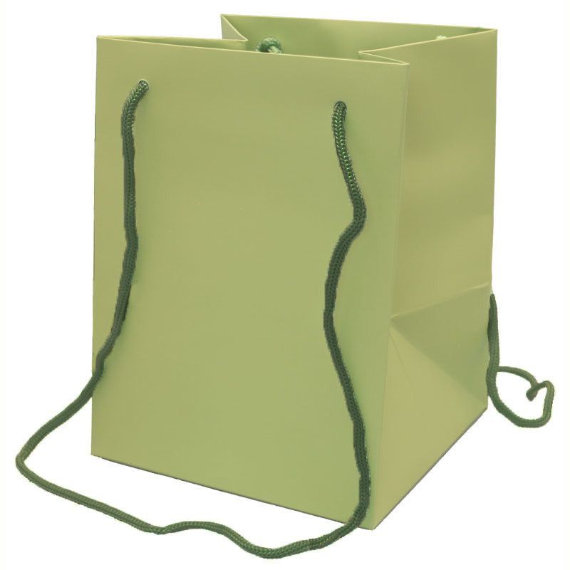 A sage green hand tie bag with rope handles. Beautiful hand tied bags make the perfect gift holder for any occasion. Easy, efficient and reusable.