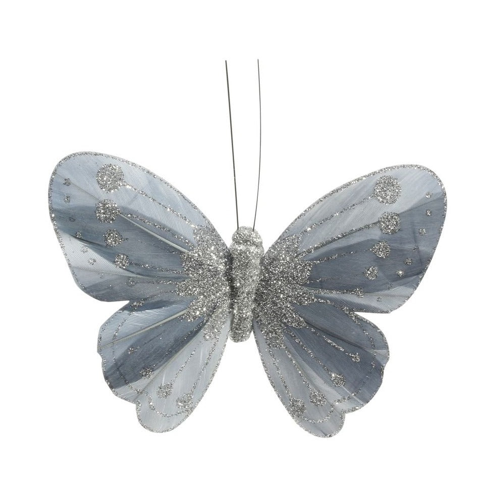 Silver Feather & Glitter Butterfly (Pack of 12)
