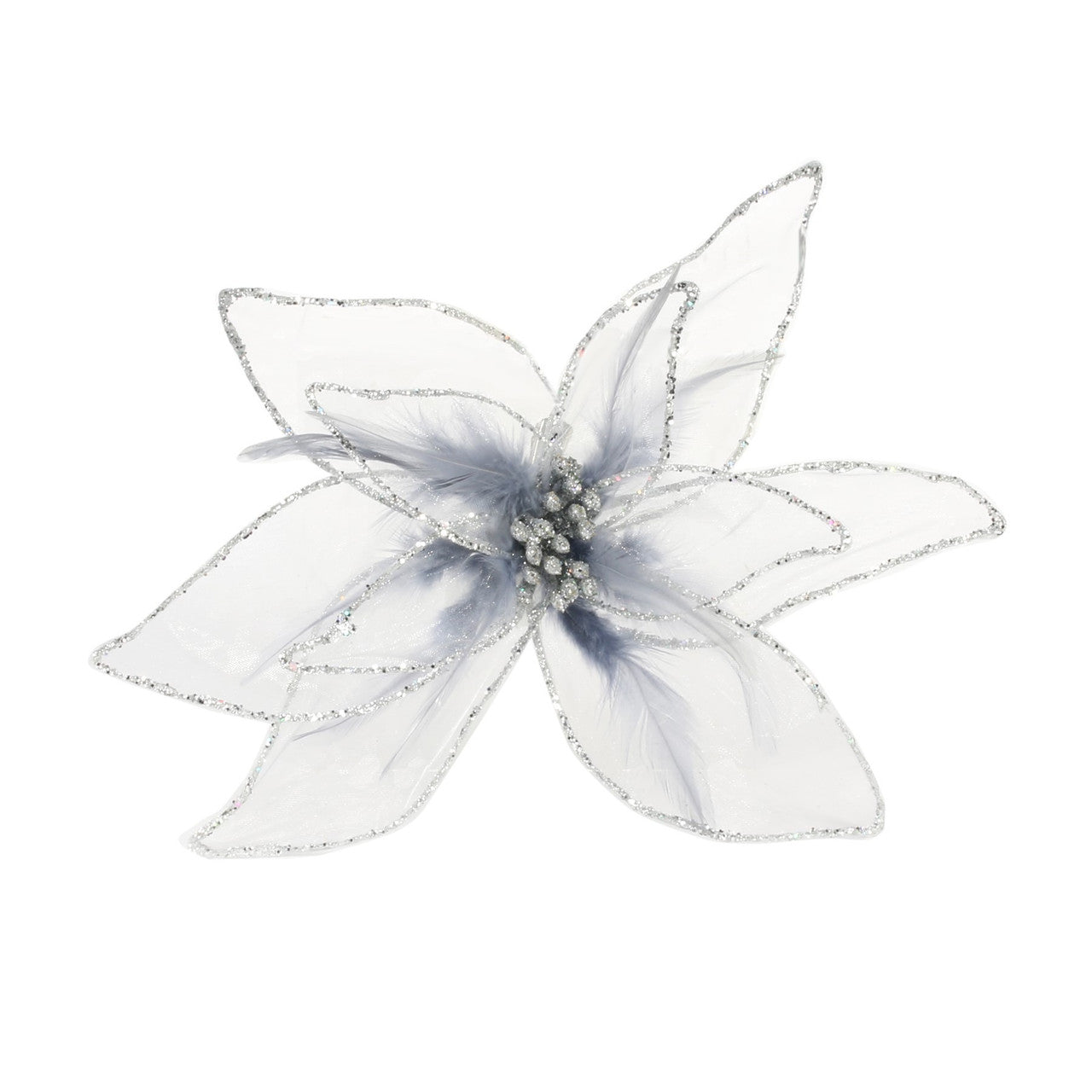 Silver Glitter Poinsettia Organza with Clip