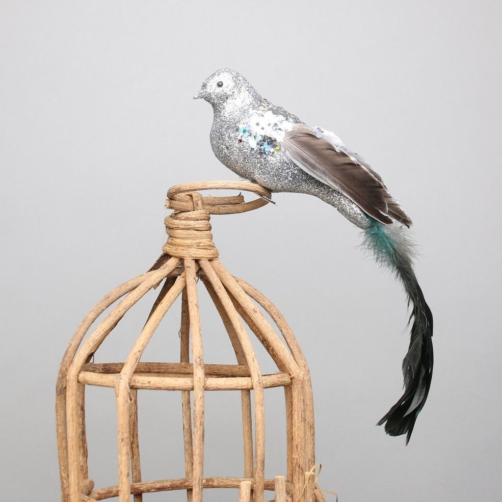 Add a touch of glamour to your crafts or decorations with this beautiful Silver Paradise bird. Crafted with a lovely feather tail, glitter and a clip, this stunning accessory is perfect for adding a special touch to any project. Enjoy a professional-looking result with this high-quality decoration. Perfect for attaching to Christmas trees.