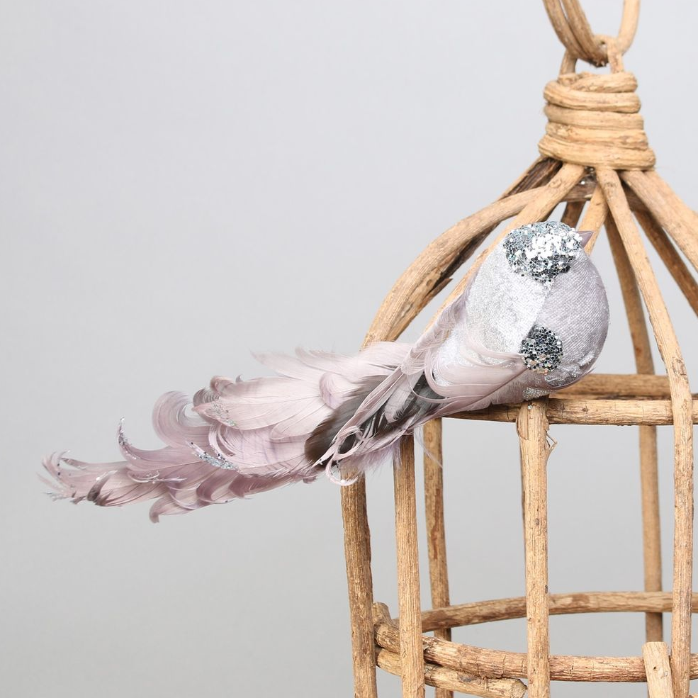 Silver Show Feather Decorative Bird with Clip
