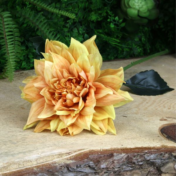 This Single Dahlia Yellow Spray is perfect for decorating any home or event. Its realistic texture and color make it look like a real flower, perfect for a lasting vase display. It also makes an excellent addition to crafting projects.