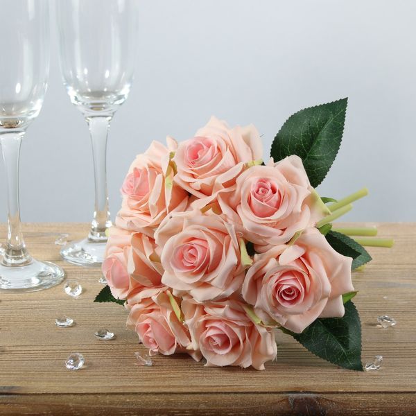 Bring a piece of the English garden into your home with this Small Peach Arundel Rose Bouquet. Crafted using delicate artificial rose petals in the early stage of opening and realistic foliage, these peach roses will provide a touch of elegance to any space. Tied together with string and perfect for vases or creating one-of-a-kind arrangements, these roses are the perfect way to bring a sophisticated, luxury feel into your home.