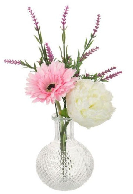 This stylish and functional Clear Glass Bud Ball Vase adds a modern touch to any room. Featuring a textured glass design with diamond embossing, this sleek vase is perfect for displaying small stems and makes a beautiful table centrepiece. With its unique and eye-catching design, this vase is sure to be an eye-catcher in any room.
