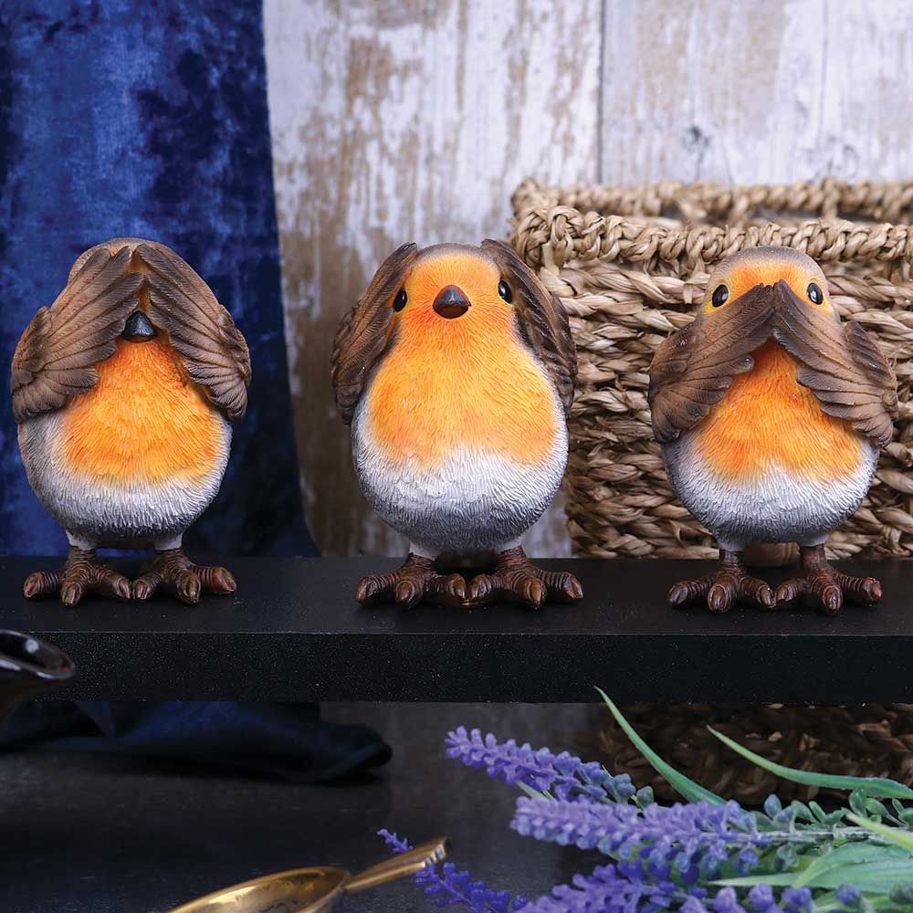 From alternative brand Nemesis Now, this trio of Robins is perfect for Christmas. These three plump birds have adorable eyes and the fattest feet, they seem to have had a few too many mince pies. One holds their wings over their eyes, one clutches their head in disbelief, their wings in their ears, and the third desperately holds their mouth closed. Cast in the finest resin before being expertly hand-painted, this trio embodies Confucius' noble wisdom of See No Evil, Hear No Evil, Speak No Evil!