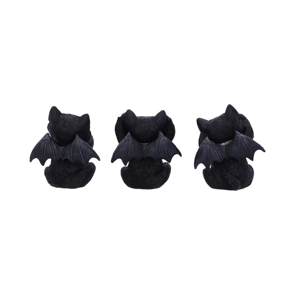 Sitting side by side these three wise kitties look up with their adorable eyes, with small bat wings attached to their back and two small vampiric fangs. One clasps their paws to their mouth, one blocks their ears, and one covers their eyes, sneaking a peak regardless. Cast in the finest resin before being expertly hand-painted, these adorable vampire cat figurines make the perfect addition to any alternative home or quirky collection.