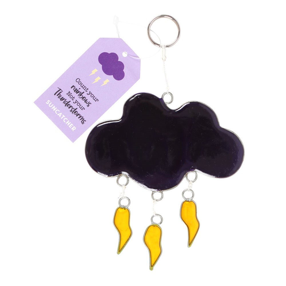 Brighten up any day with this resin suncatcher shaped like a dark thundercloud. Includes a matching hang tag with 'Count your rainbows, not your thunderstorms' text to make any grey day a bit sunnier.