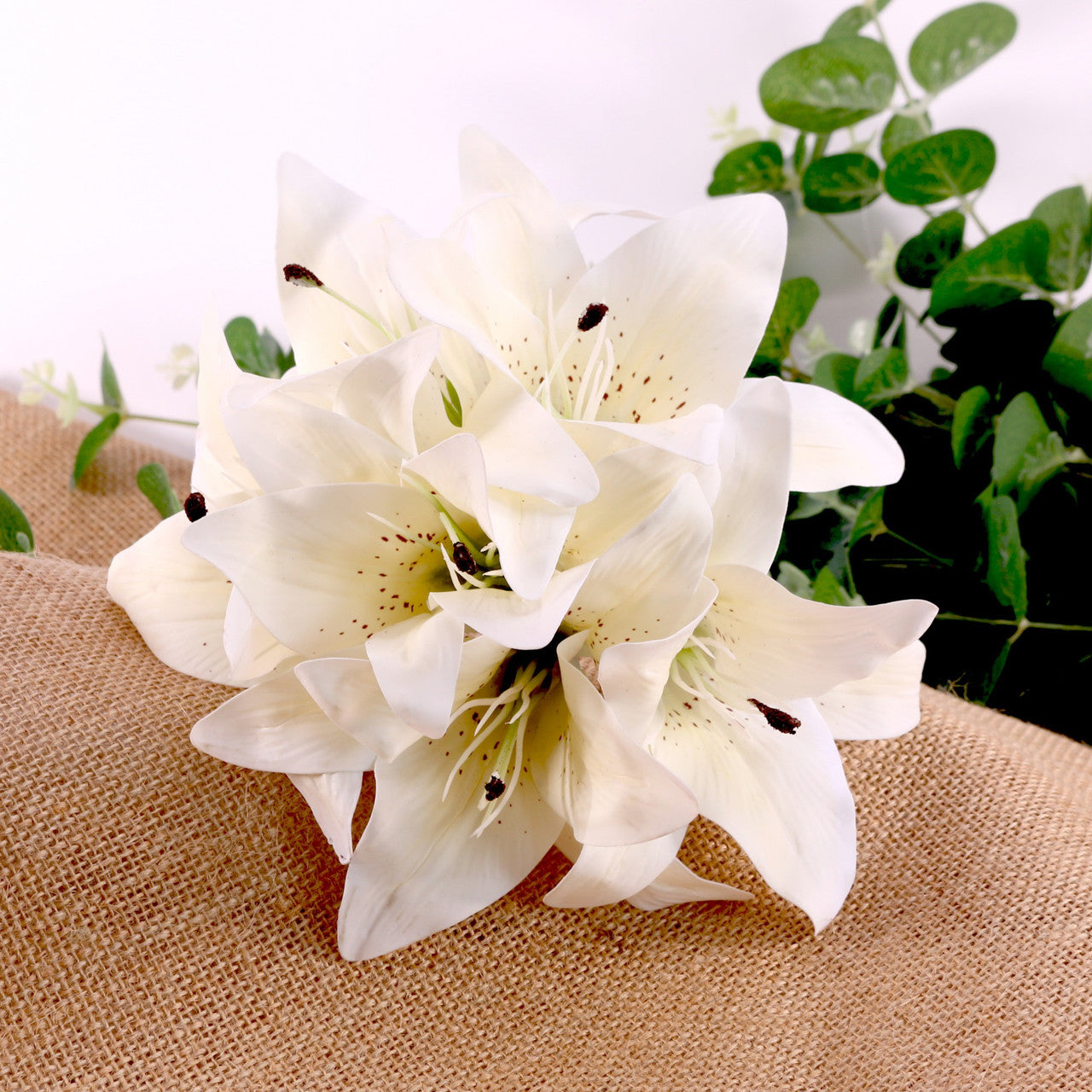 Artificial Silk Lily Bouquet 6 Lily Heads - Cream