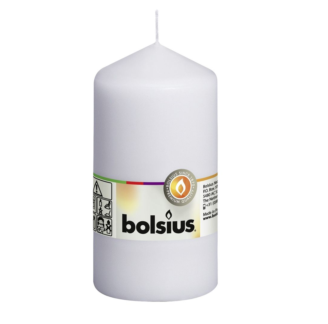 Premium quality Bolsius candle in a crisp white tone, perfect for setting the scene. Unscented.