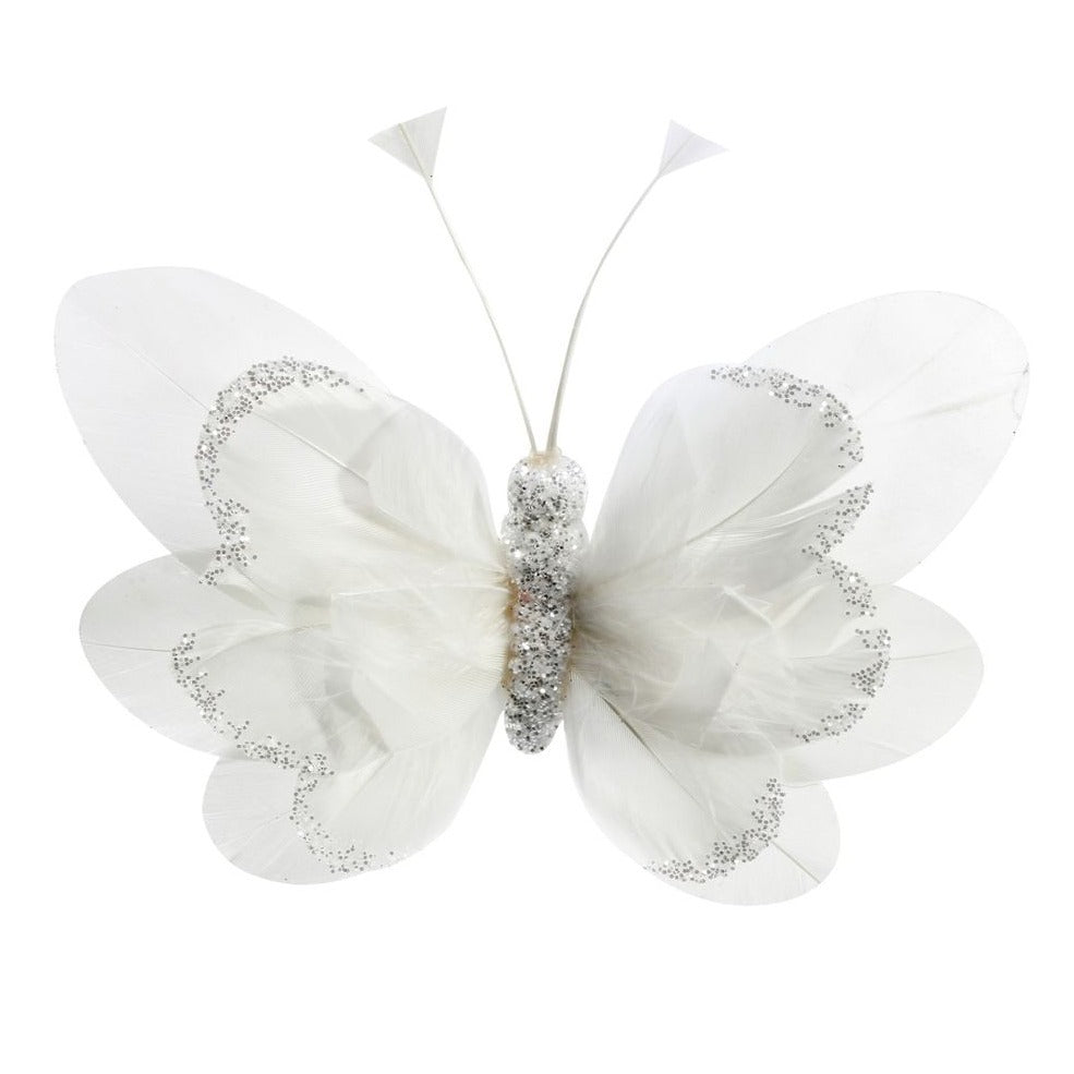 White Feather & Glitter Butterfly (Pack of 6)
