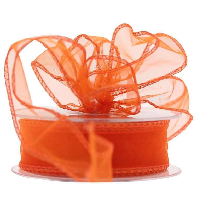 This Wired Chiffon Ribbon in vibrant orange adds a pop of colour to any autumn-inspired décor. The wired edge ensures easy shaping and styling for all your crafting and decorating needs. Elevate your projects with the elegant and versatile texture of this wired chiffon organza ribbon.